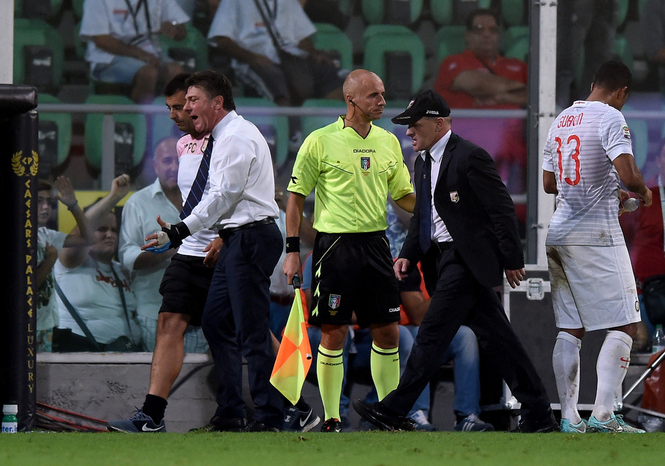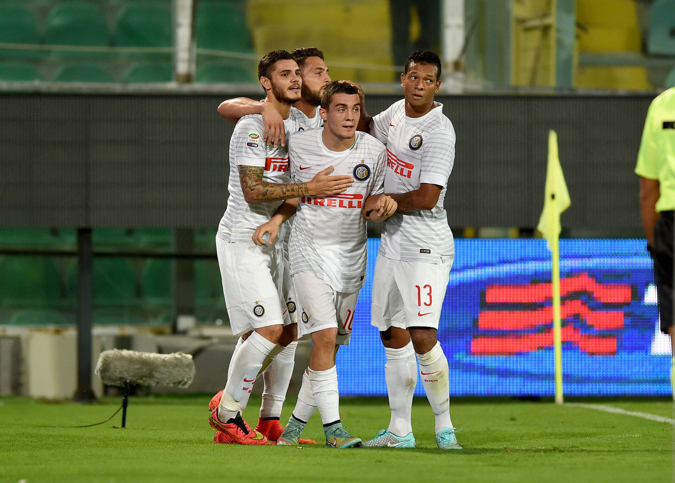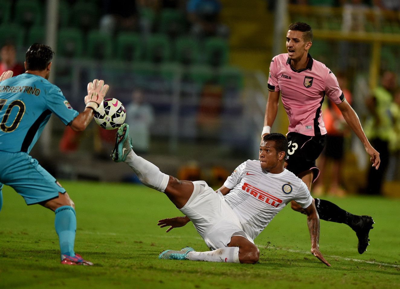 Na rozhodčího se zlobilo i Palermo a za protesty byl vykázána na tribunu jeho trenér. Po chybě hráčů Interu v útoku se valili na Handanoviče hned dva hráči soupeře. Belotti v pokutovém území rukou odstrčil Nagatoma a to rozhodčímu stačilo, aby zapískal faul. Následný gól padl až po odpískání.